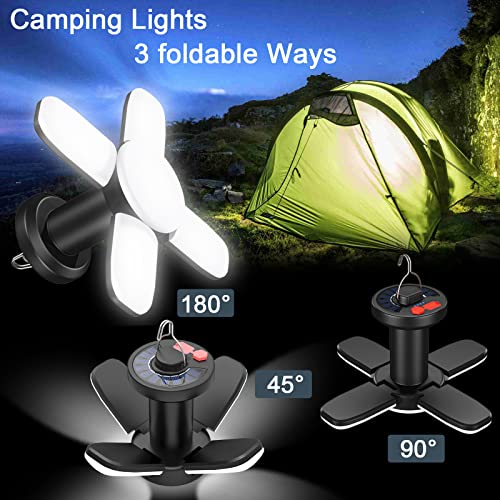 【Luce da campeggio pieghevole】 Nuovo design pieghevole, componenti LED regolabili, qualsiasi angolo di rotazione, design facile da usare, 4 pannelli di lampadine LED regolabili possono essere piegati a 90 gradi, consentendo di godere di un'illuminazione più ampia a 360 gradi. Che si tratti di un campeggio, di un garage, di una serra, di un giardino o di una barca, offre un'ampia gamma di luci per un'illuminazione mirata.