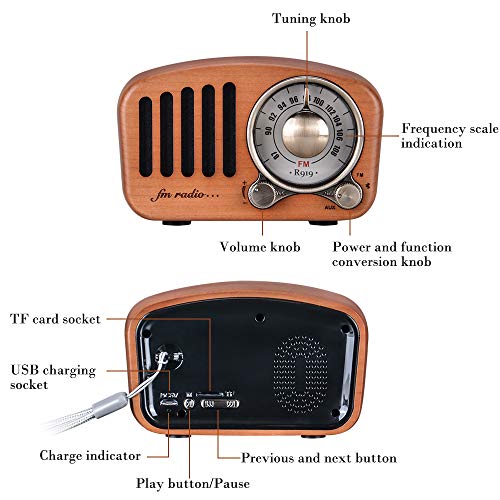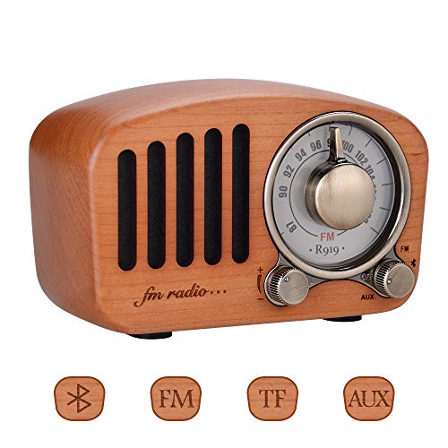 Olycism Radio FM Portatile di Mogano con Altoparlante Bluetooth Stile Vintage Ingresso Audio Jack da 3,5 mm e Porta per Scheda TF Suono Stereo da 5W