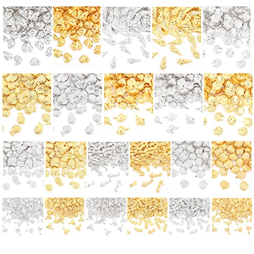 OLYCRAFT 2200Pcs Riempitore in resina a tema oceano Riempimento in resina Artigianato Decorazione per Nail Art Accessori per la creazione di gioielli - Golden & Silver