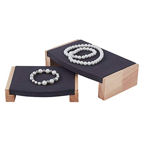 OLYCRAFT 2PCS Espositore per Gioielli In Legno Massello Vetrina Superficie In Pelle Scamosciata Sedile per Collana Da Esposizione Porta Bracciale - Nero