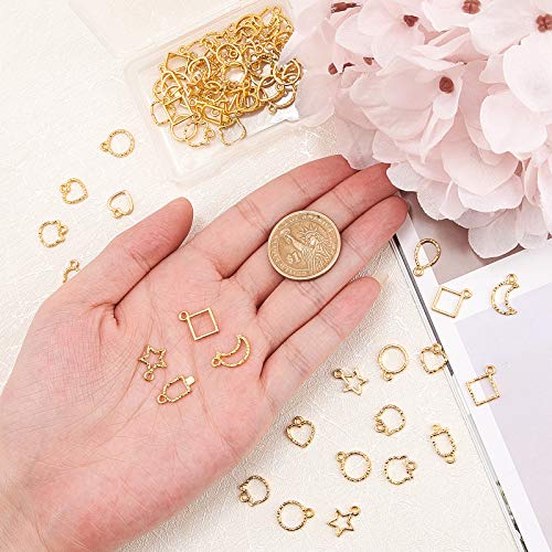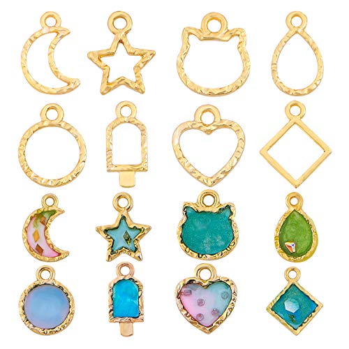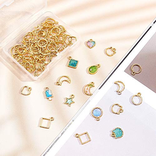 OLYCRAFT 80pcs Mini Ciondoli Con Ciondolo A Castone Aperto In Lega di Zinco Ciondoli Con Cornice In Lega di 8 stili Cornici In Resina Cava Con Lunette Aperte Dorate per Fare Gioielli