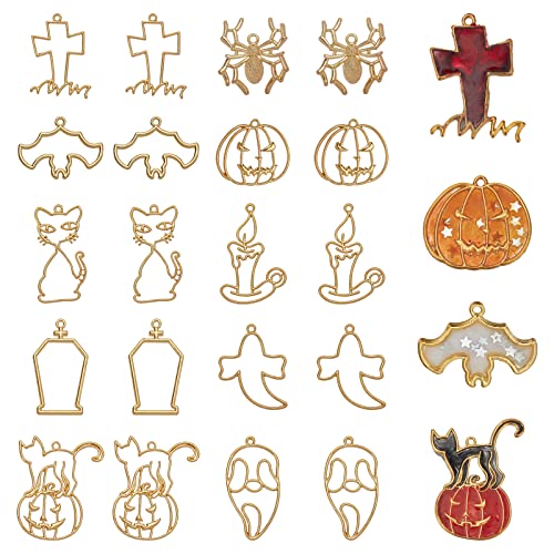 OLYCRAFT 20 ciondoli aperti sul retro, 10 stili con telaio in lega, cornici in resina cava, ciondoli con lunetta aperta con anello per fai da te, artigianato in resina, collane e gioielli