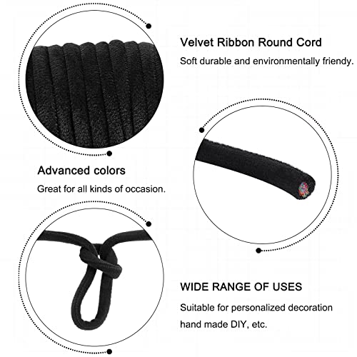 OLYCRAFT Cordoncino rotondo in velluto morbido da 8 mm con cordino in velluto nero con nastro in velluto e filo di velluto con bobina, per collane girocollo, gioielli, accessori per cucire