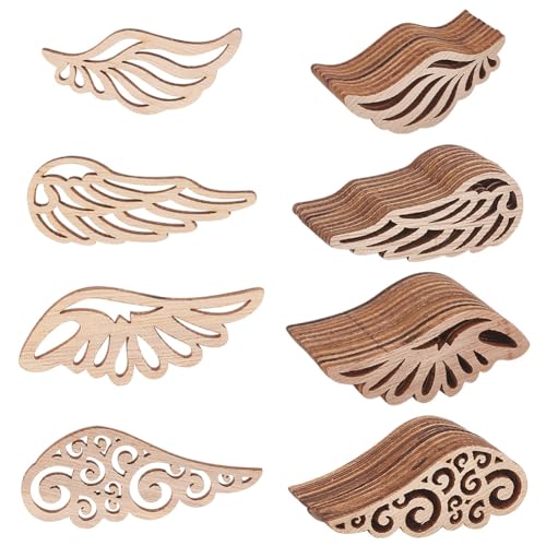 OLYCRAFT - 80 fette di legno con ali in legno, decorazioni in legno, decorazioni in legno, decorazioni in legno non compiute per artigianato, decorazioni fai da te, 4 stili
