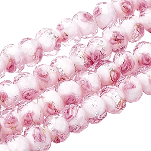 OLYCRAFT 70 pezzi 6 ~ 8 mm pellicola argentata in vetro lampwork perle di vetro fatte a mano, perle rotonde sfuse per rosario fai da te gioielli fai da te con foro da 2 mm - schegge rosa