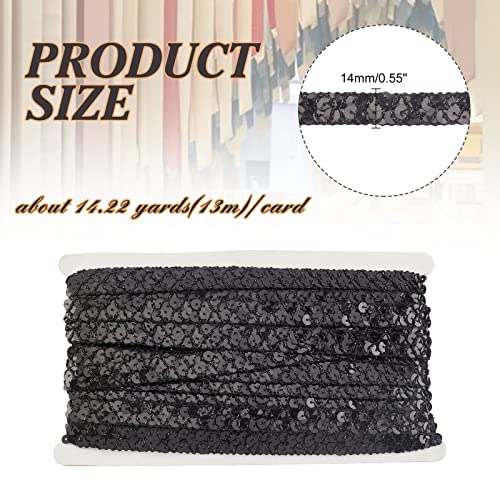 OLYCRAFT 14.22 Yard Paillettes Rotolo Metallico No Stretch Paillettes Trim 2 File Tessuto Paillette Nastro Trim Nero Pizzo per Abbellire Abiti e Cucire Fasce - Nero