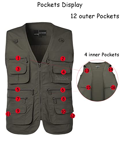 Tasche multiple: gilet da pesca safari da lavoro con 16 tasche funzionali di diverse dimensioni, tra cui tasche sicure con cerniera e tasche con chiusura in velcro. Si tratta di un gilet altamente pratico e versatile.