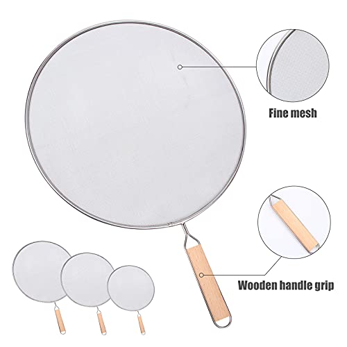 Olymajy Set di 3copri paraspruzzi in acciaio inox con manico in legno, evita che l'olio schizzi in cucina e vi ripara da scottature - Coperchi a maglia ultra fine, in acciaio inox antiruggine