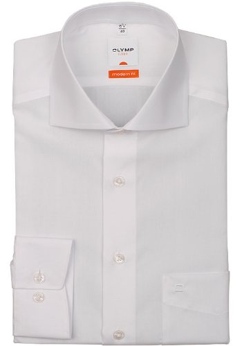 OLIMPO Modern Fit camicia da uomo (taglio leggermente sciancrato) in puro cotone popeline, ovviamente non serve stirare, combinata con squali colletto colletto, polsini e tasca sul petto (logo), braccio Lunghezza 64 cm, colore: bianco