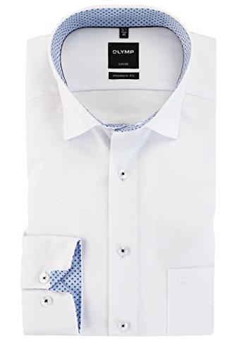 OLYMP Luxor - Camicia a maniche lunghe con colletto Under Button Down e polsini combinati con inserti nel colletto e polsini con taglio sciancrato con una tasca sul petto in bianco