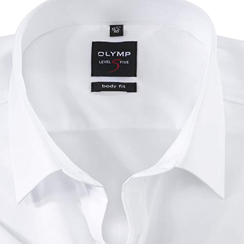 Olymp Uomo Camicia Business a Maniche Corte Level Five,Body Fit,New York Kent,Weiß 00,46