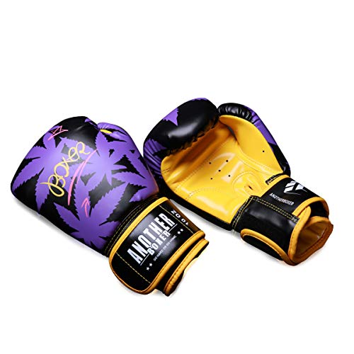 OLYSPM Guantoni da Boxe,Professional Guanti da Boxe in Pelle,Guantoni da Allenamento per Muay Thai Kickboxing MMA Training,4oz-14oz(Viola)