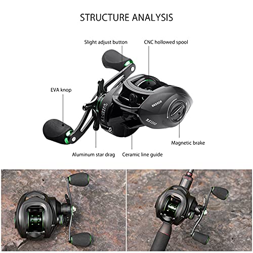 Potente-il sistema di frenatura magnetica utilizza 8 potenti magneti N48 per fornire una rapida regolazione al volo e riduce notevolmente la possibilità di contraccolpo. Il sistema di frenatura magnetica offre un'incredibile potenza di trascinamento fino a 17,6lb e offre la massima fluidità di trascinamento per una linea coerente.