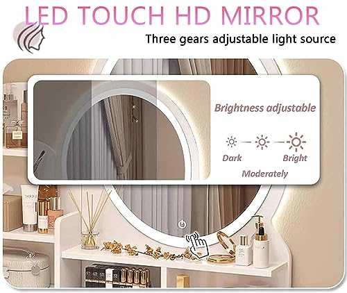 OM-PDD Toletta da Trucco con Specchio e Luci Professionale, Toeletta Trucco con Luci LED e Sgabello, Tocca 3 Tipi di Oscuramento LED, Materiale MDF, Archiviazione a Strati