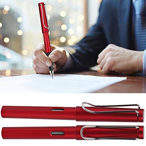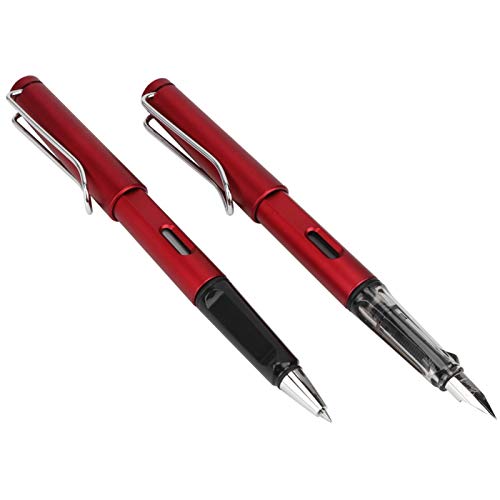 Omabeta 2pcs penna stilografica penna in acciaio inox penna inchiostro calligrafia studente scuola di cancelleria per studio e ufficio(Rosso)