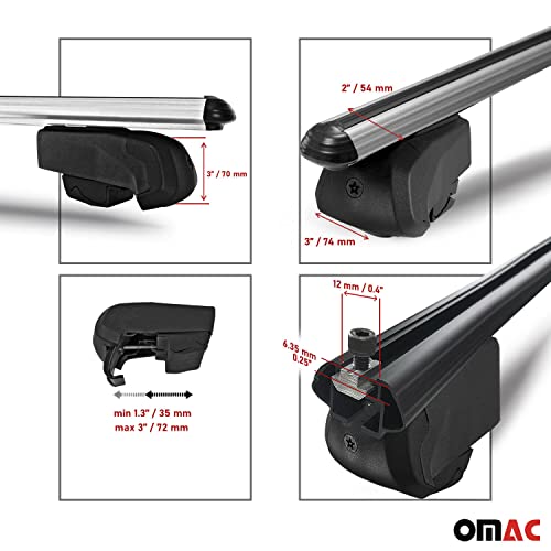 OMAC - Barre portapacchi e portabici in alluminio anodizzato nero, 2 pezzi