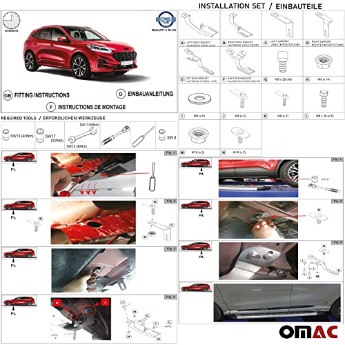 OMAC Pedane laterali scorrevoli laterali Grembiuli compatibili con Ford Kuga 2019-2022 | Supporti in alluminio Accessori per decorazione auto