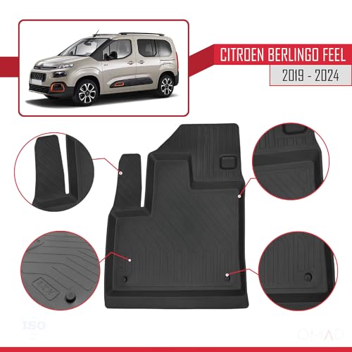 Omad Auto Tappetini Abitacolo per Citroen Berlingo FEEL 2019-2023 Inodore 4D Tappeti in Gomma NERO