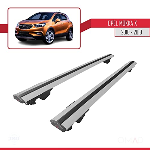Omad Compatibile con Opel Mokka X 2016-2019 Barre Portatutto HOOK Portapacchi Barre Tetto Con Chiusura a Chiave Alu GRIGIO