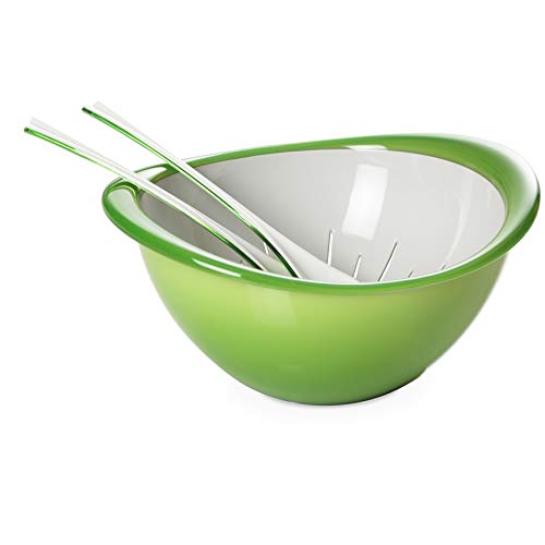 Omada Design Set Insalatiera, Scolapasta, Posate in Plastica da 26 cm, Impilabile, Made in Italy, Lavabile in Lavastoviglie, Linea Trendy, Verde