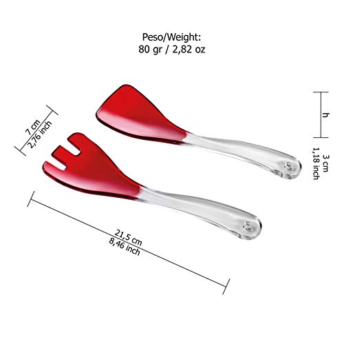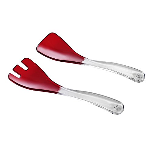 Omada Design Posate da Insalata bicolore, Forchettone e Cucchiaio in Acrilico, Lavabili in lavastoviglie, Made in Italy, Linea Diamond, Rosso Rubino