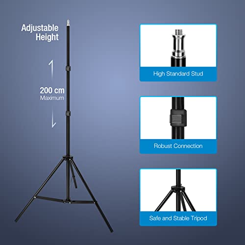 [Sistema di supporto in alluminio regolabile] L'altezza del treppiede può essere regolata a 6,5 piedi/2 m. La larghezza della traversa può essere regolata tra 0,8 m e 3 m. Blocco a pulsante singolo, una persona può facilmente montare e smontare in pochi minuti. Il telaio inferiore è realizzato in lega di alluminio di alta qualità, con una forte capacità di carico, robustezza e durata. Adatto per uso domestico e professionale in studio.