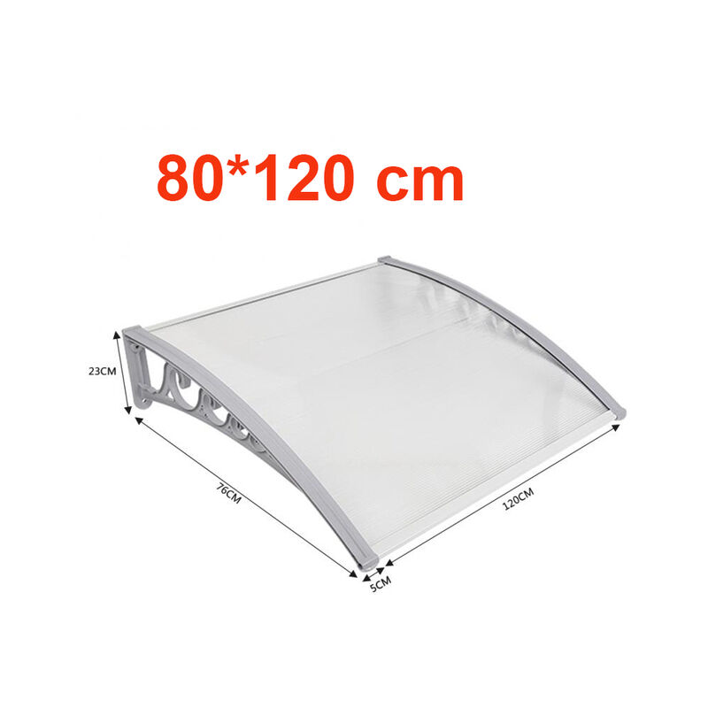 Descrizione Nuovo Porta Baldacchino tenda Fronte Retro Portico Ombra Esterna Patio Copertura Materiale: hollow bordo di pc + pp telaio + alluminio Colore:Argento 1. Resistenza al calore e resistenza alla corrosione: Si può essere stabile tra-40 ℃ e 120 ℃, E resistere alla corrosione e l'impatto. 2. PP (plastica di ingegneria) telaio ad arco, rinforzato con coperchio in alluminio, la struttura è molto stabile. È resistente alla corrosione, il vento e la grandine 4. Il attrezzature composto da viti e bulloni viene utilizzato quando il prodotto viene consegnato, E si consiglia di installare sul cemento/cemento mortaio parete;