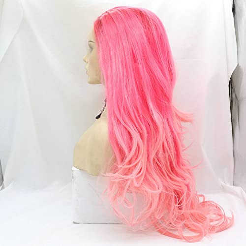 Ombre parrucche rosse rosa parrucche frontali in pizzo sintetico per donne lunghe onde sciolte attaccatura dei capelli naturale Drag Queen Cosplay feste feste festival parrucche in fibra resistente