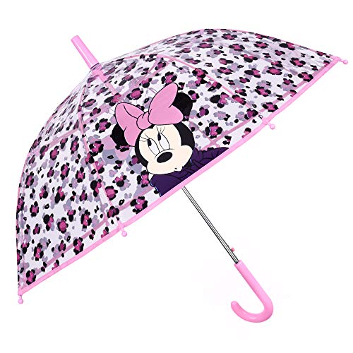 Ombrello Bambina Trasparente Minnie - Ombrello Bimba Disney Minni Mouse - Rosa Maculato - Cupola Antivento in Fibra di Vetro - Automatico - 5/7 Anni - Diametro 74 cm - Perletti Kids