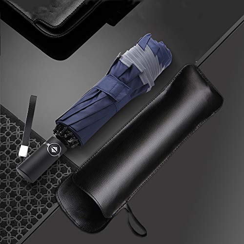 Estremamente comodo: il nostro ombrello pieghevole ha un sistema completamente automatizzato, perfetto per il funzionamento con una sola mano, che ti aiuta a stare comodo quando cammini mentre entrambe le mani sono piene di qualcos'altro come una tazza di caffè o telefono cellulare o quando porti un bambino. Non solo, avrai una custodia in pelle fine per riporre questo ombrello antivento, perfetto da riporre in auto, valigette, zaini, borse da viaggio, ecc.