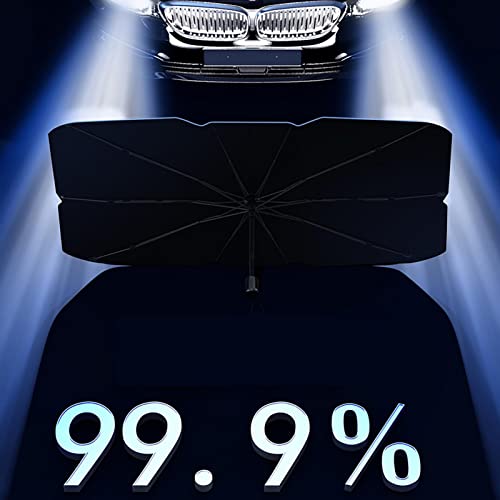 Ombrello Parasole Auto Parabrezza, Pieghevole Parasole per Auto Parabrezza Interno a Ombrello, Riparo Solare e Termico per l'Auto, Blocca il 99.9 dei Raggi UV, per Auto, SUV, Camion, Autocarri