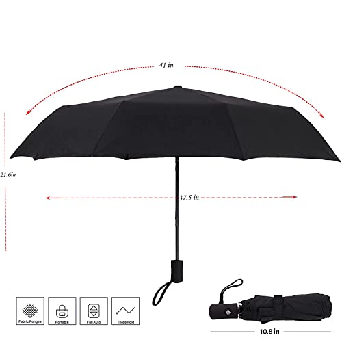 Ombrello Pieghevoli Antivento Automatico, [One Hand Open & Close], Tquens Compatto Antivento Ombrello con 41.5 Inch Wide Canopy Extra, Robusto Ombrello per esterno da viaggio