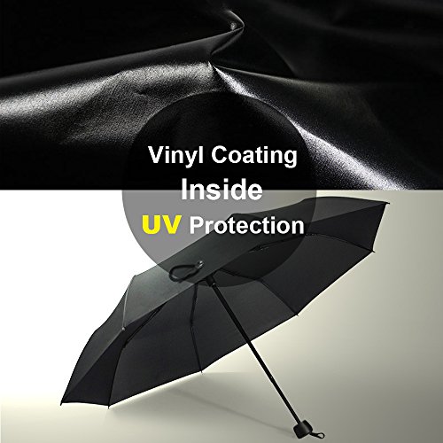 Ombrello Portatile, Veotech Ombrello Portatile Resistente 8 Rib Stecche Rinforzate Infrangibile Anti-UV Antivento Doppia-Uso Ombrello Pioggia/Sole Ombrello Pieghevoli Antivento - NERO