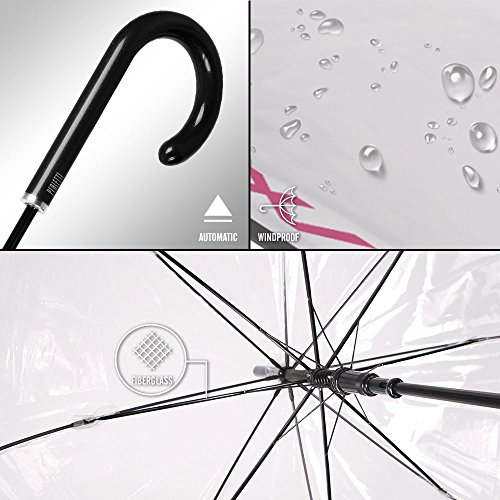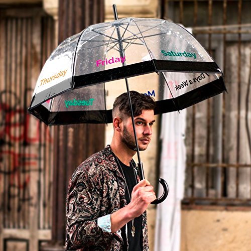 Ombrello Trasparente Automatico Donna - Ombrello Cupola con Stampa Giorni della Settimana - Resistente e Antivento - Fantasia alla moda - Diametro 89 cm - Perletti