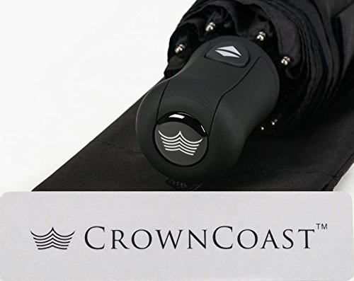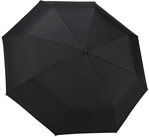 Ombrello da viaggio, protegge dal vento fino ai 96,6 km/h, con chiusura e apertura automatica, compatto, non si rompe se si rovescia, Black (Nero) - TU-200