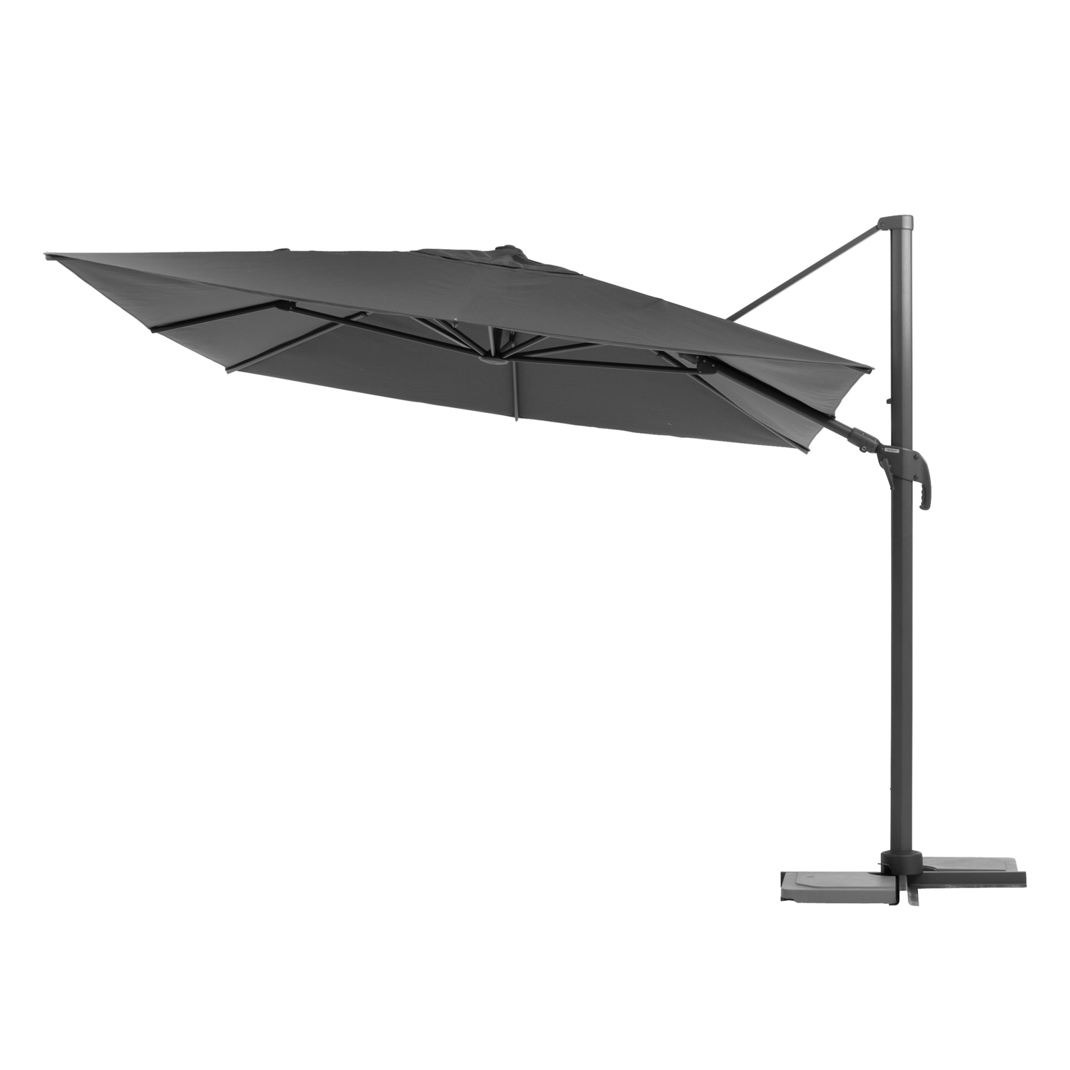 Indispensabile nelle giornate di sole, l'ombrellone Melhia di Hespéride ti permetterà di trascorrere piacevoli momenti all'aperto in piena estate. Perfetto per il tuo giardino, ti permette di creare un'ampia zona d'ombra per pranzare in compagnia o goderti momenti di relax. L'apertura è pratica tramite manovella e la base con struttura decentrata offre un maggiore spazio sotto il suo piacevole riparo. Grazie al sistema di rotazione a 360°, è possibile regolare l'orientamento dell'ombrellone senza doverne spostare la base. Il tessuto in poliestere è avvitato all'estremità per una maggiore resistenza al vento e il tessuto è idrorepellente, lasciando scivolare via l'acqua quando piove. Durante l'inverno conserva l'ombrellone in un luogo coperto con apposita copertura. La base con piastrelle non è inclusa. Dimensioni: 400x300xh266 cm. Colore telo: antracite.