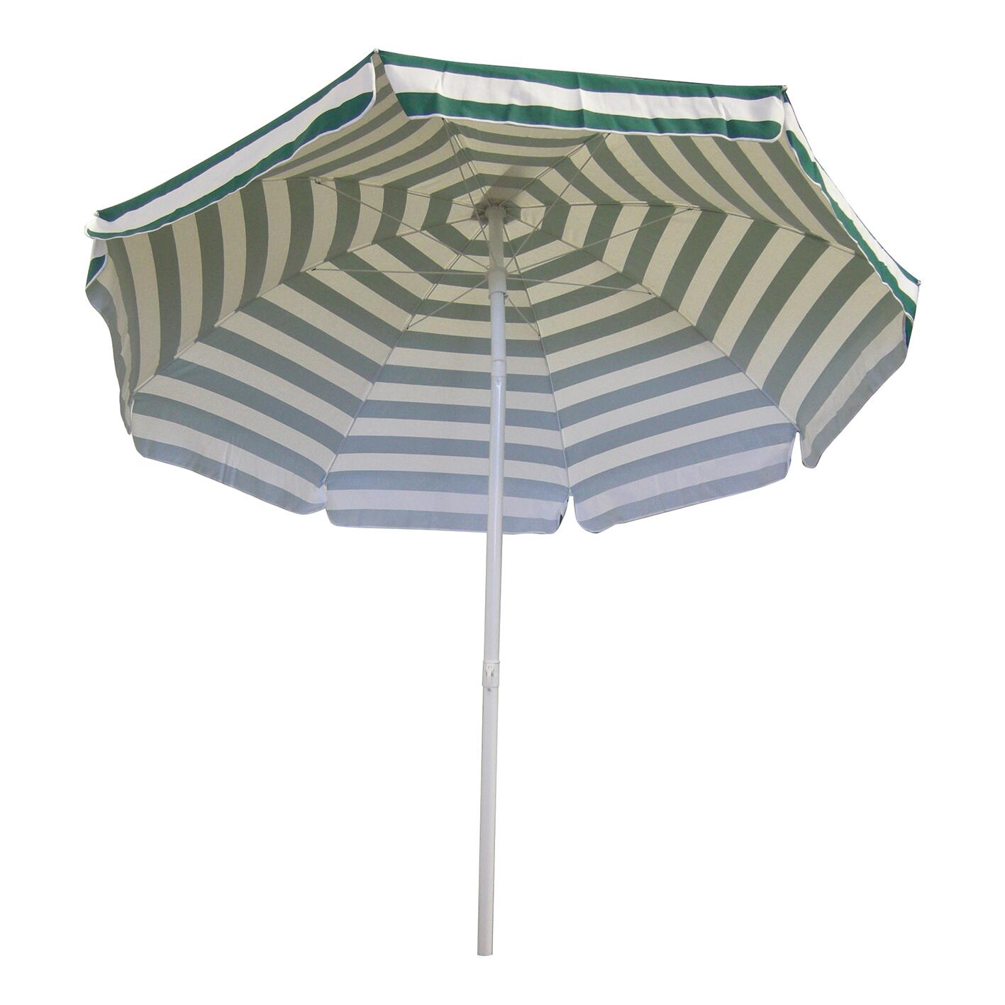 Struttura in acciaio colore bianco, 8 stecche. Telo in cotone da 200 g/m². Adatto per essere collocato al centro dei tavoli nello spazio predisposto. Ideale per balconi e piccoli terrazzi, ombrellone classico adatto a tutti gli spazi esterni. Tessuto con trattamento anti UV. Facile da utilizzare e leggero da trasportare. Grazie al palo snodabile protegge dal sole tutto il giorno