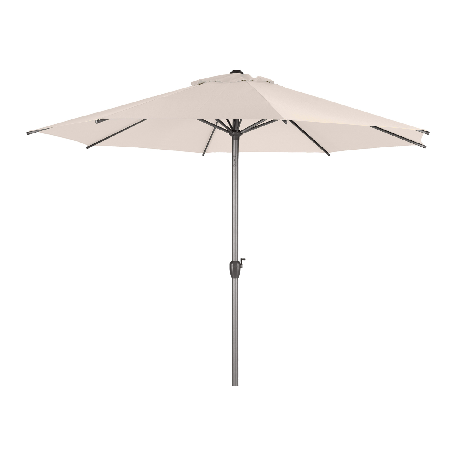 Nelle giornate di sole, rilassati all'ombra dell'ombrellone rotondo Loompa di Hespéride. Semplice e pratico, questo grande ombrellone crea un'ampia zona riparata dai raggi del sole in giardino o sul terrazzo, si inclina ed è dotato di pratico meccanismo di apertura a manovella. Con la sua struttura in alluminio e le nervature in acciaio, presenta un fascino elegante e senza tempo. La struttura metallica e la tela di qualità rendono Loompa un ombrellone robusto e stabile. Il palo trattato con resina epossidica è resistente alla ruggine e ai raggi UV e, come la tela idrorepellente, è in grado di resistere alla pioggia leggera. Con pioggia battente e maltempo è necessario riporre l'ombrellone in un luogo pulito e asciutto. La base con piastrelle non è inclusa. Misure: diametro 300 cm, altezza 292 cm. Colore telo: grigio.