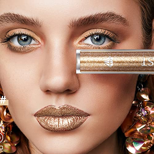 Ombretto Liquido Glitter Occhi, Rossetto Lucidalabbra Metallizzato, Metallic Colori Lip Gloss, Metallo Liquido Ombretto Occhi Brillantemente, Lucidalabbra Glitterato(05 Sunset Golden)
