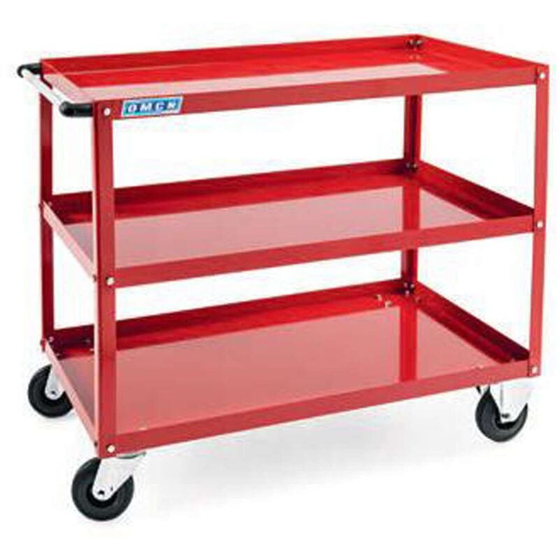 Carrello porta attrezzi gigante da 180kg OMCN 208/SIl carrello porta attrezzi di tipo gigante 208/S è un articolo del marchio OMCN robusto ed affidabile con una portata di 180kg ed è dotato di un cassetto. Composto da 3 ripiani, 4 ruote dal Ø di 125mm. Le sue dimensioni sono di 1000(l)x830(a)x600(p) mm Caratteristiche Tecniche Portata 180 kg Piani 3 Dimensioni 1000x830x600mm Ø ruote 125 mm Consegna in 10-15gg