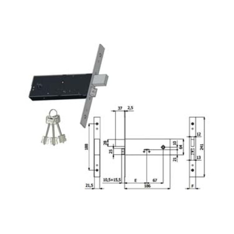 Mm.90 interasse mm.67 (5940) scatola e coperchio in acciaio zincato e plastificato - frontale in acciaio inox mm.25 - catenaccio in acciaio nichelato - scrocco regolabile in lega speciale nichelata - catenaccio comandato dalla chiave - scrocco comandato dalla chiave o dalla maniglia - reversibile - 4 mandate - in dotazione: 3 chiavi, 2 sottofrontali, coppia borchie, viti di fissaggio in acciaio inox, istruzioni di montaggio Categoria merceologica: Serrature, chiusure di sicurezza e accessori - Sicurezza - Serrature a doppia mappa da infilare