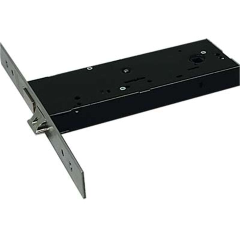 A doppia mappa. Scrocco reversibile. Chiusura con catenaccio a 4 mandate. Quadro maniglia Mm. 8. Frontale in acciaio inox con bordo quadro da Mm. 25x241. Altezza scatola Mm. 64. In dotazione: 3 chiavi, coppia borchie.