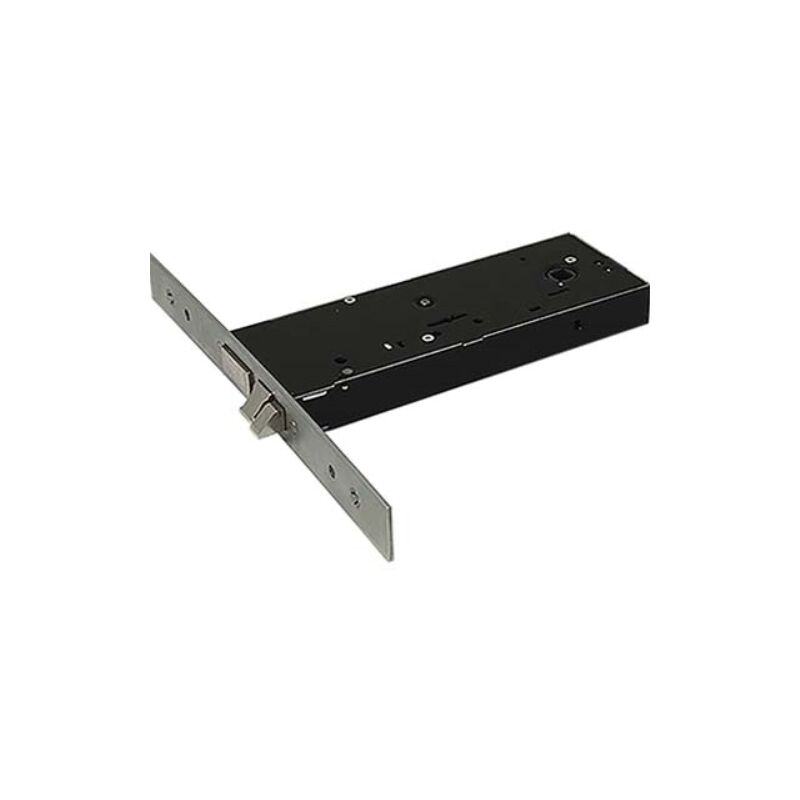 A doppia mappa. Fermo a giorno e scrocco reversibile elettrificato 12V. Chiusura con catenaccio a 4 mandate. Quadro maniglia Mm. 8. Frontale in acciaio inox con bordo quadro da Mm. 25x241. Altezza scatola Mm. 64. In dotazione: 3 chiavi, coppia borchie.