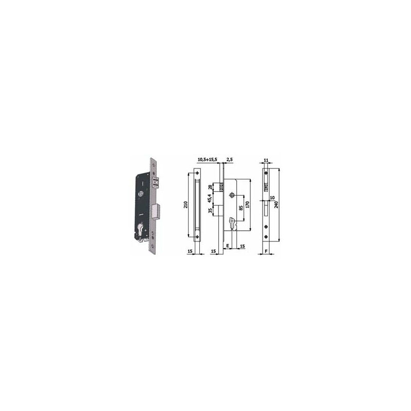 Mm.30 interasse mm.85 (1300.30.22) scatola e coperchio in acciaio zincato e plastificato frontale in acciaio inox mm.22 catenaccio in lega speciale nichelata scrocco anti rumore in lega speciale nichelata catenaccio comandato dalla chiave scrocco comandato dalla chiave o dalla maniglia reversibile 1 mandata in dotazione: vite cilindro cilindro non compreso Pezzi per confezione primaria: 10,0 Larghezza 34,1 Lunghezza 18,6 Altezza 7,8 Peso 2,509