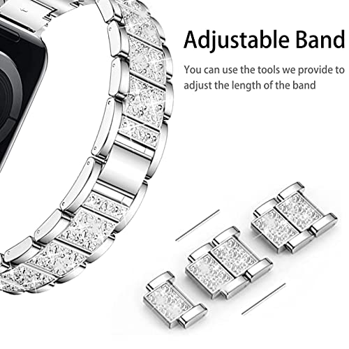 Omee Cinturino in metallo compatibile con Apple Watch 45 mm, 42 mm, 44 mm, 38 mm, 40 mm, 41 mm, per donne e uomini, cinturino di ricambio in acciaio inossidabile con strass per SE iWatch Serie 8 7 6 5