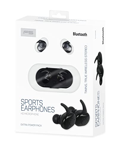 Omega Freestyle Bluetooth V5.0 - Auricolari sportivi TWS + stazione di ricarica, colore: Nero