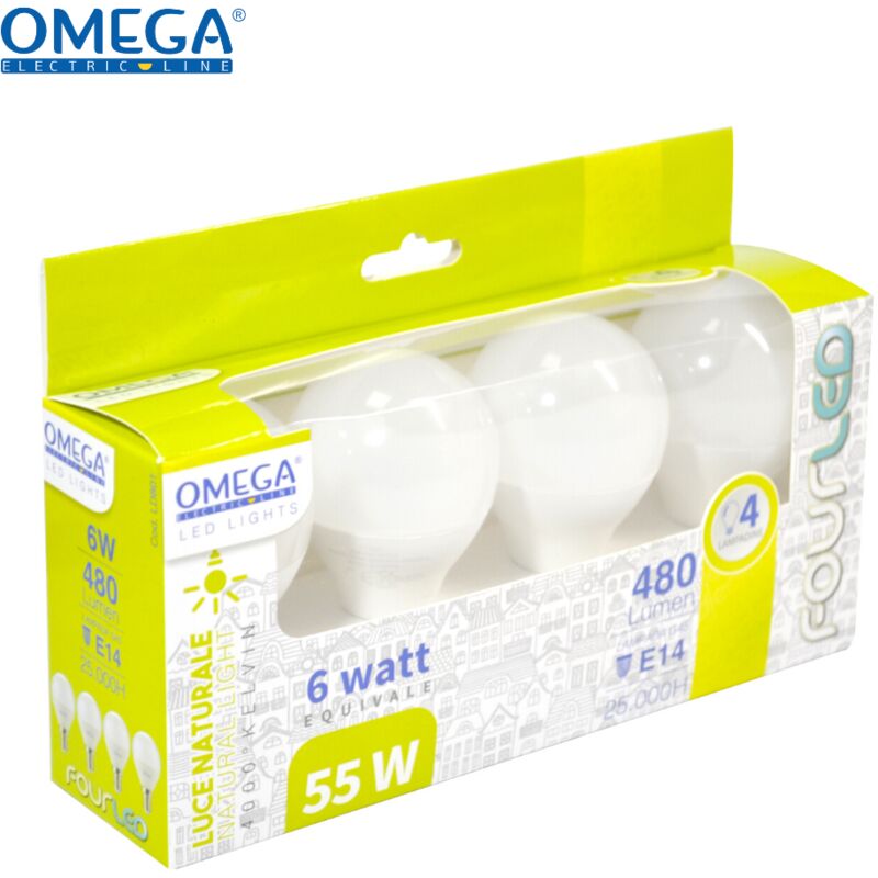 SFERETTA LED: Set in scatola 4Pz G45-6W 4000k D12G12 Driver HQ 480 Lm E14 PF>0,5, 270¦ apertura bulbo, 25000 Ore. A