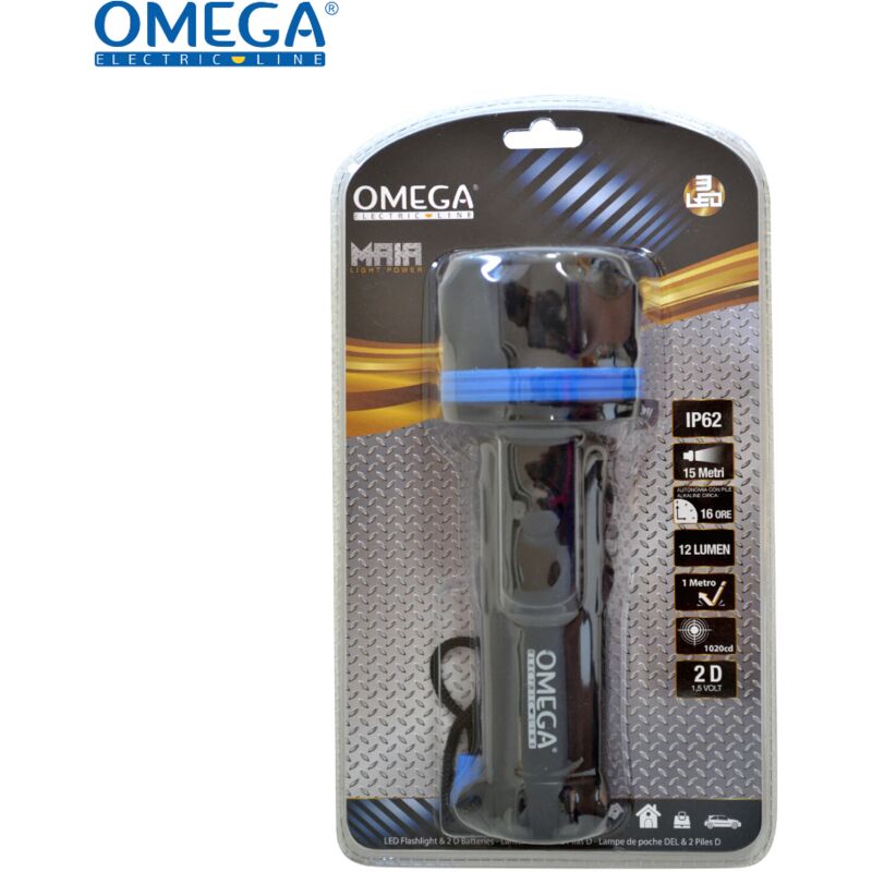 Torcia tascabile grande 3w 36lm ip65 size 70x187 rivestita in gomma