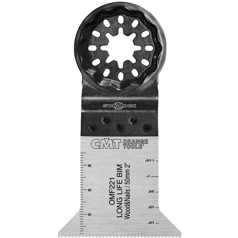 Larghezza di taglio 50 mm, lunghezza di taglio 50 mm, spaziatura denti 1.4, denti per pollice 18, attacco starlock caratteristiche: bi-metallo 8% cobalto con dentatura giapponese a doppia fila, lunga durata materiale: lama per legno e chiodi fino a 5 mm di diametro, cemento poroso, cartongesso, plastica applicazione: ampia gamma di applicazioni, forma ristretta al centro per avanzamento rapido