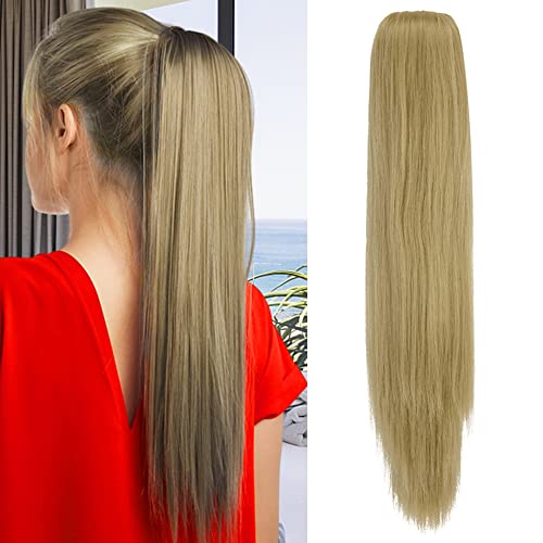 OMGREAT - Extension per capelli con clip, per coda di cavallo, capelli dritti, per donne, sintetici, resistenti al calore, 55,5 cm, biondo cenere